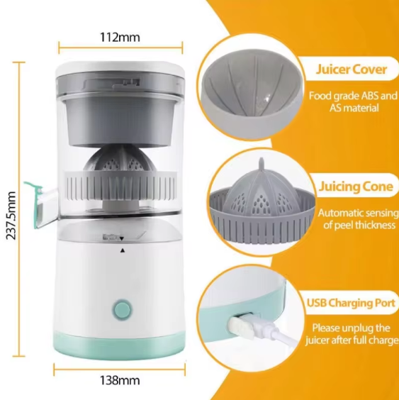 Exprimidor inalámbrico y recargable, cabe en cualquier espacio. Perfecto para casa, la oficina o un picnic, con capacidad de 400 ml y 45W de potencia.